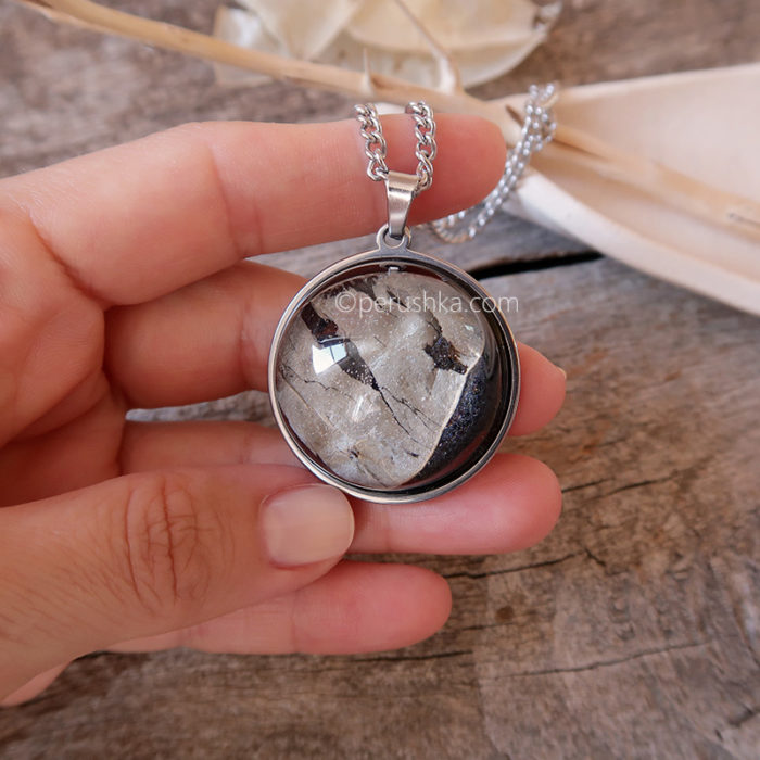 - Material: Crystal resin, black pigment, Lunaria annua plant